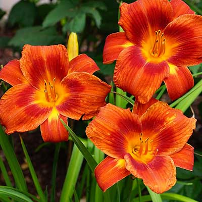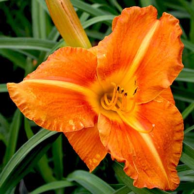 Flower Color: Bright orange petals with a darker orange eyezone and a chartreuse throat, complemented by golden midribs.