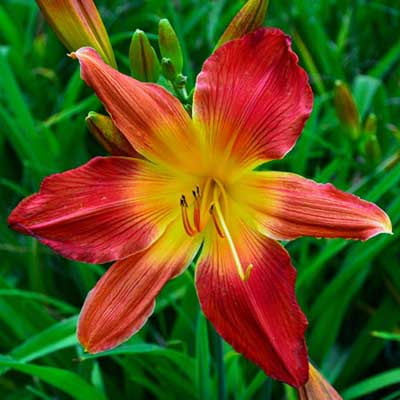 Bloom Form: Classic single daylily form with six petals, often a bit flared or slightly ruffled.